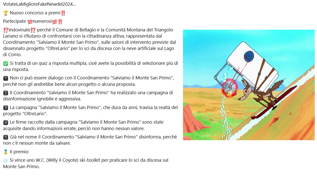 «... Votate la migliore "Fake New" del 2024: nuovo concorso a 🏆premi🏆 ... partecipate 💯numerosi💯‼️ ...».