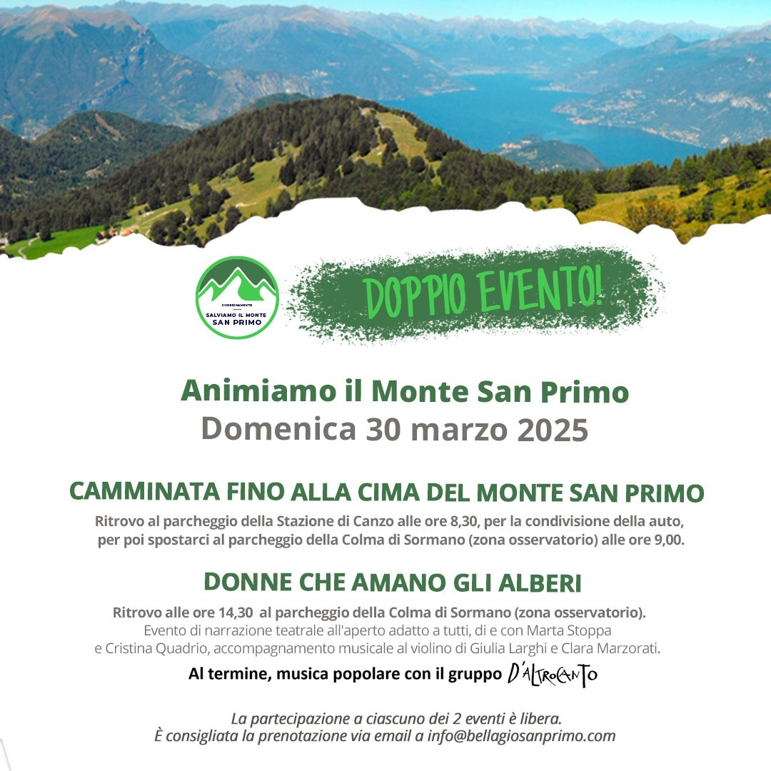💚 Domenica 30 Marzo trascorreremo insieme un'intera giornata sul Monte San Primo, immergendoci nella natura e nella cultura, ed offrendo un ambiente amichevole e rilassato per favorire la socializzazione e rafforzare il nostro senso di comunità.